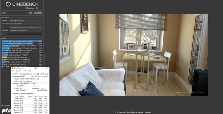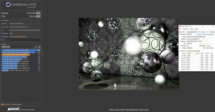 在 Intel XTU 的測試中,可以看到 9400F 確實不是一個吃電或發熱怪獸,加上使用的技嘉主機板 B360 AORUS GAMING 3 WIFI 和散熱器 CoolerMaster MA410P,讓供電和散熱都不會卡到瓶頸。