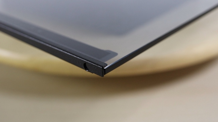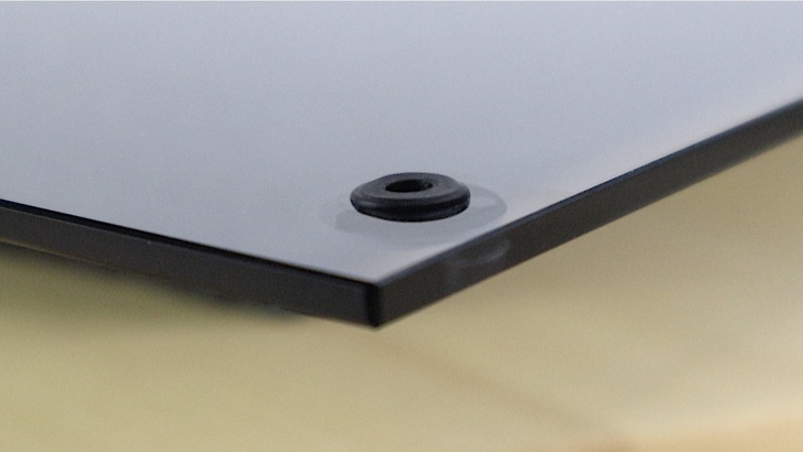 玻璃側板下方則是金屬材質,有凹槽與機殼固定,打開機殼時也分擔了大多重量,方便拆卸。