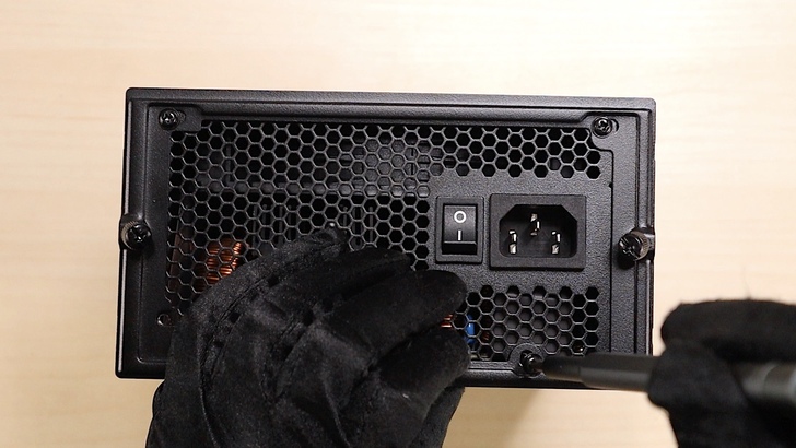 把機殼上的擋板鎖上電源供應器,然後連接好電源線後,將螺絲鎖好,固定在位子上。