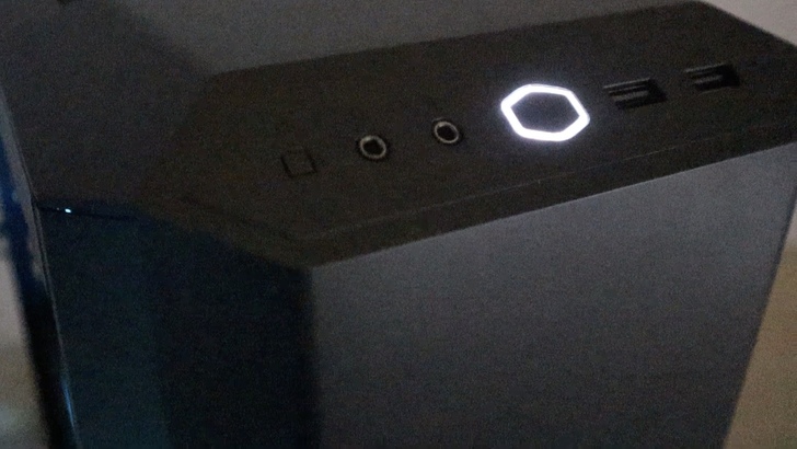 機殼 Power 鍵本身就是 CM 的 Logo,周圍也會獨立發出白光,很有科技感。