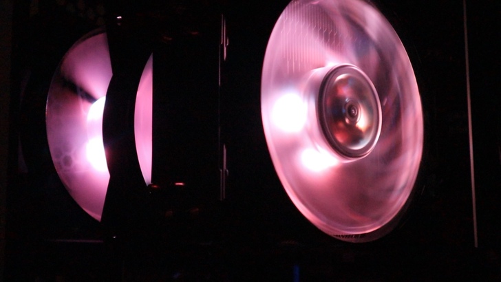 機殼本身自帶三個風扇,都是 RGB LED,啟動時風扇的葉片也會有光暈。