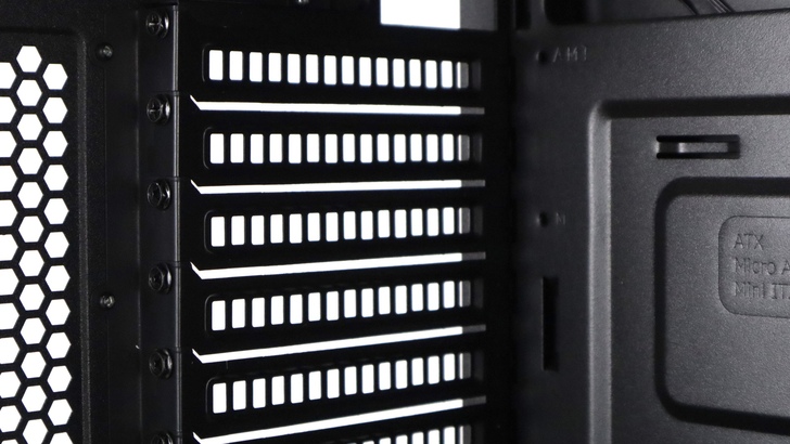 不同於一旁蜂巢狀的機殼,PCIe 的擋板是方格狀的,透過螺絲可以逐一卸下。這次我們預計會用掉三個,兩個放顯卡,一個放無線網路的擋板。