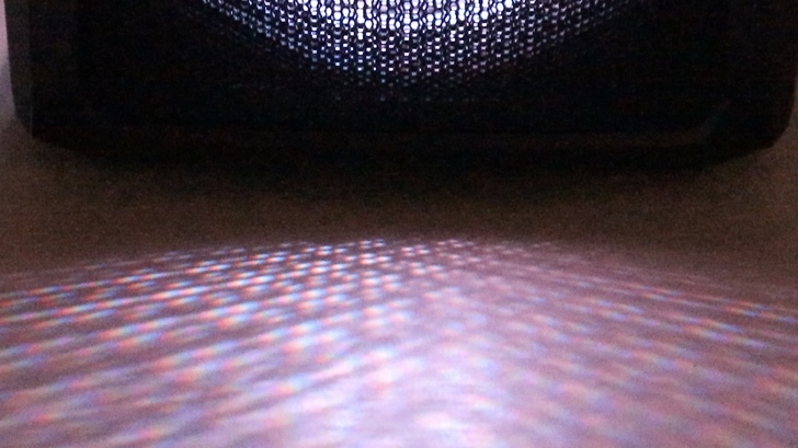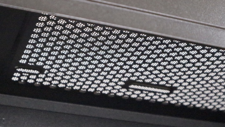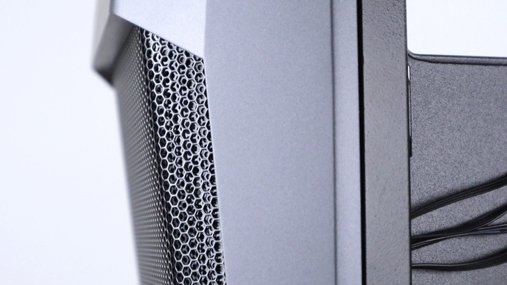 從側邊也能看到兩層黑色蜂巢狀金屬網的交織效果。