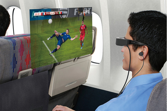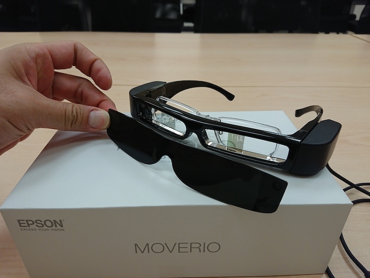 EPSON 在投影機市場的技術是相當純熟與廣為人知的,但比較少人知道EPSON 也有在做AR 眼鏡。根據EPSON的解釋,它們的眼鏡正式應用其投影技術,在眼鏡的兩側各有一台超迷你的投影裝置將畫面投射到眼鏡中央的半透射反射鏡,就能在眼前形成影像了。