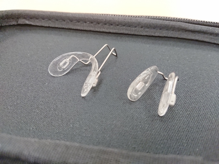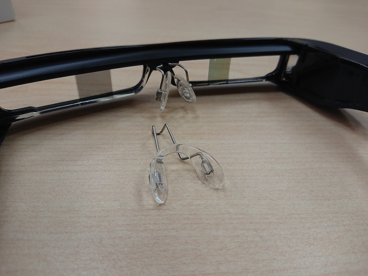 ▼隨附有兩個鼻墊一長一短,長短除了讓不同臉型的人可以選用外,如果是有近視需戴眼鏡的人,則必須選長鼻墊,這樣就可以在MOVERIO BT-30C與鼻樑間騰出讓使用者配戴原近視眼鏡的空間。