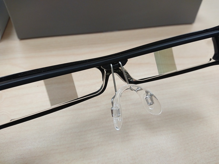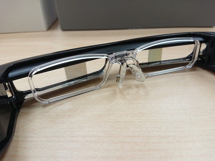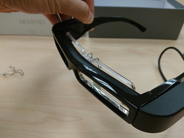 ▼這個透明鏡框,是要讓近視的使用者可以拿去裝配近視鏡片並裝在MOVERIO BT-30C上,這樣的話,就可以不用戴近視眼鏡再戴MOVERIO BT-30C,這樣的設計看起來好像要多配一副鏡片有點麻煩,但其實對於要長期使用這款智慧眼鏡的朋友,多配鏡片的錢其實也沒多少,但卻一勞永逸,配戴會更舒適方便。