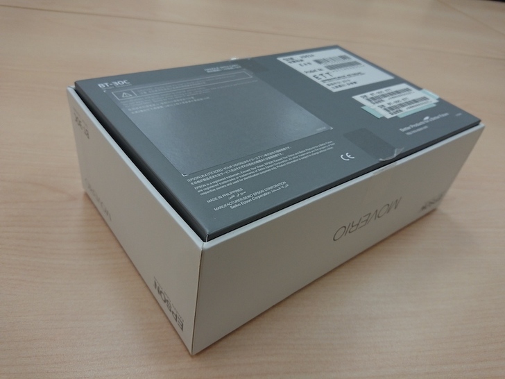 ▼白色霧面的硬盒包裝,正面明示為EPSON MOVERIO智慧眼鏡系列產品,型號為MOVERIO BT-30C,背面條列了型號,序號以及相關電子產品都有的制式標示,完全沒有任何產品圖片,有種神祕感 XD,不知道的人還真不知這是什麼。