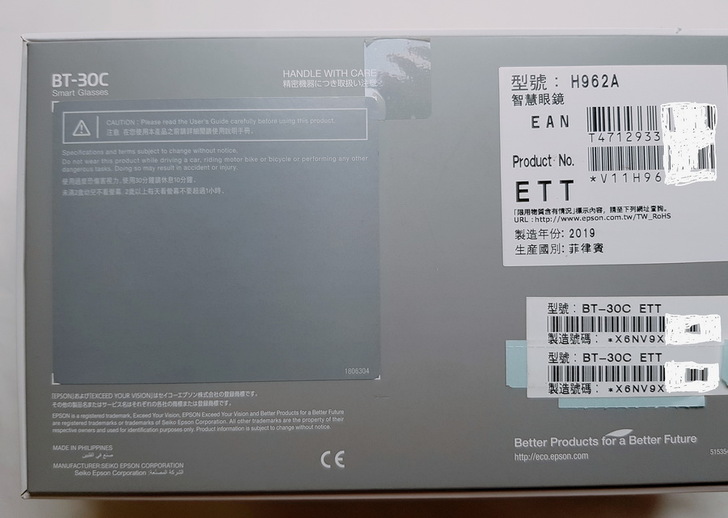 ▼ Epson Moverio BT-30C 外盒就是那麼的簡單,就是只有 LOGO跟型號。(好歹要有個照片吧?)