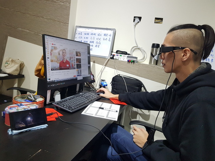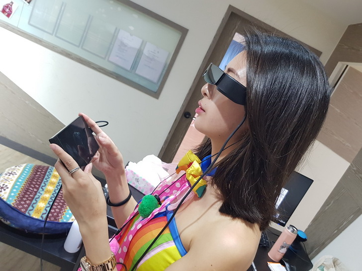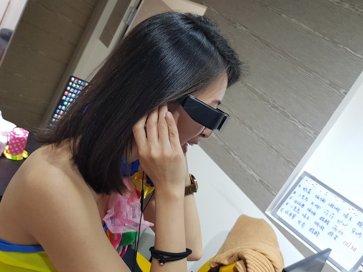 ▼ 讓美眉先直接戴上 有遮光片的BT-30C,那個視覺效果讓她馬上驚叫起來。