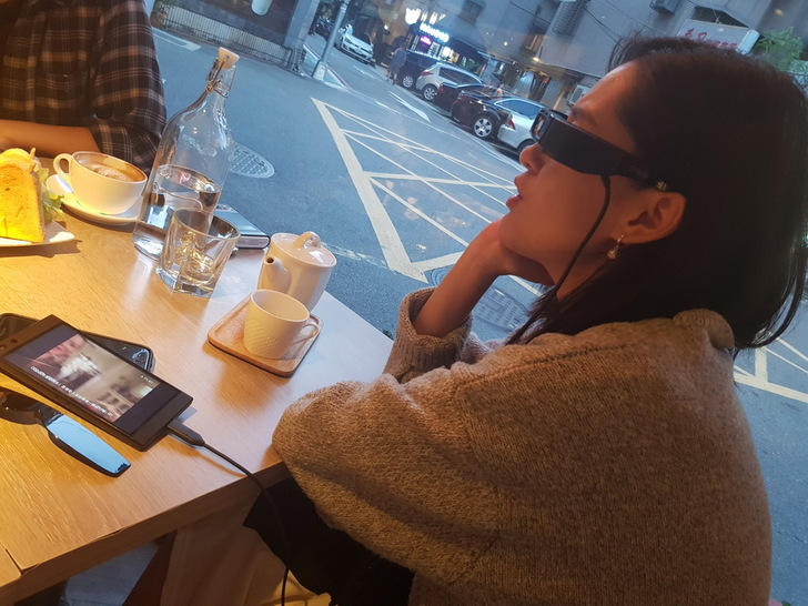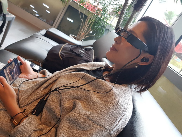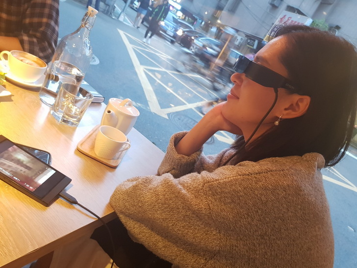 高畫質時代的來臨,讓現代人只要買台大尺寸液晶電視,在家就擁有大螢幕的享受,反觀出門在外時,就只能侷限在手機或平板的小螢幕;而且對於走在路上常常看到很多人低著頭 追劇、看影片、玩手遊的人,視角完全看不見周遭的狀況,實在是非常的危險。