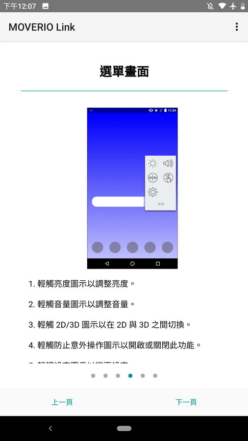 ▼ 「MOVERIO LINK」的設定介面很簡潔,最常用到的就是 調整音量、調整亮度。