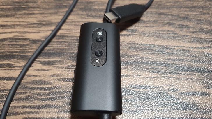在傳輸線上還有個可以讓使用者插上耳機以及調整音量個外接裝置,因為將傳輸線接上手機後,聲音也會連同影像一起經由線材傳輸到影像上,手機喇叭自然無法發出聲音,所以需要外接耳機來達到最佳體驗。