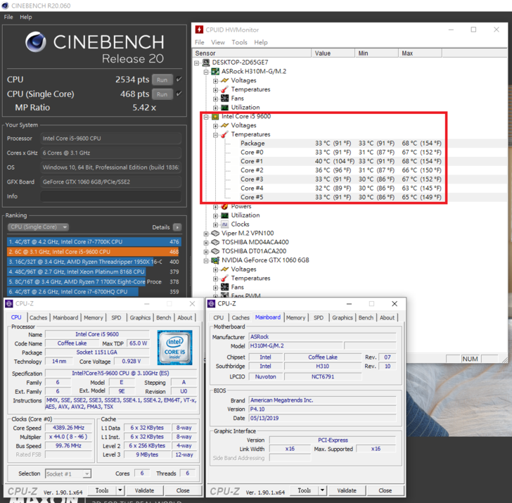 溫度測試 – Intel Core i5-9600