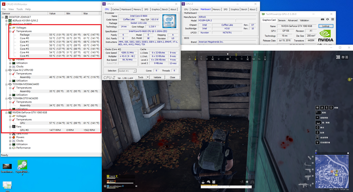 最後來玩個 PUBG, 不論是 CPU / 顯示卡的風扇轉速均設定為 AUTO, 監測出來的數值也與前面幾個測試細目差異不大.