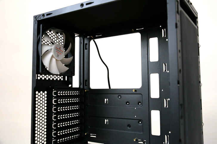 後方有顆 120mm 排風的風扇, 背板也挖大空間方便日後升級改裝散熱器安裝.