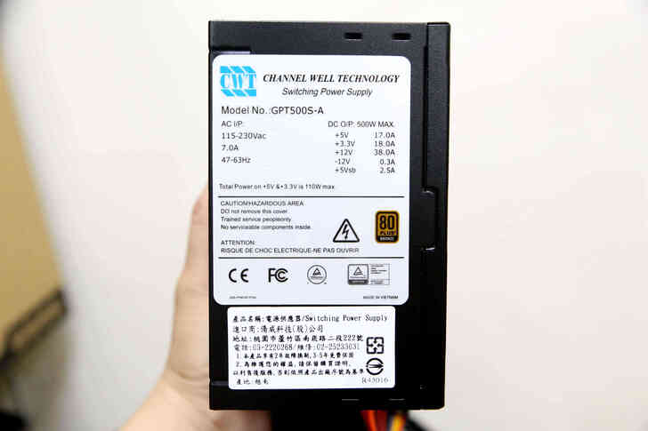 C+P組合的電源供應器是正牌僑威自家生產製造, 包裝上就很簡單的寫 CWT 並標註瓦數大小, 風格非常極簡.