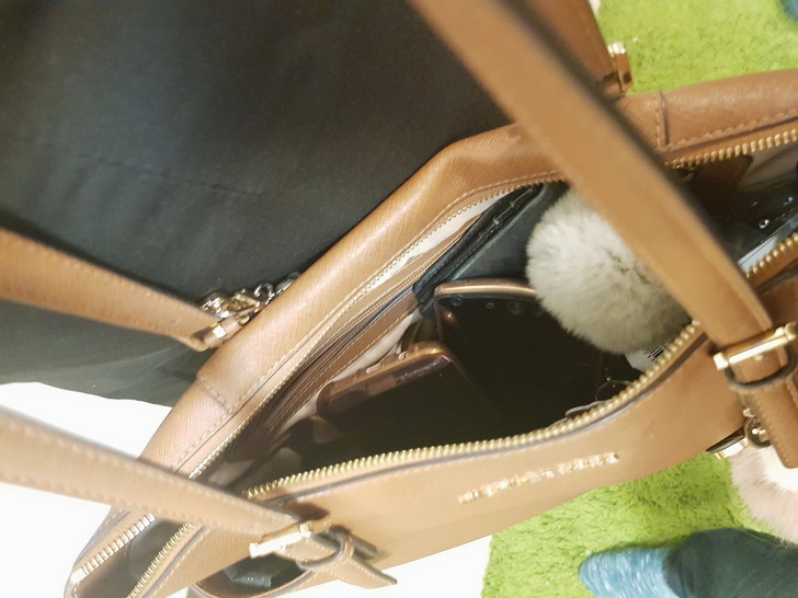 ▼ iPhone 11 有了如此的全方位保護,美眉隨便丟包包也不怕碰撞了。