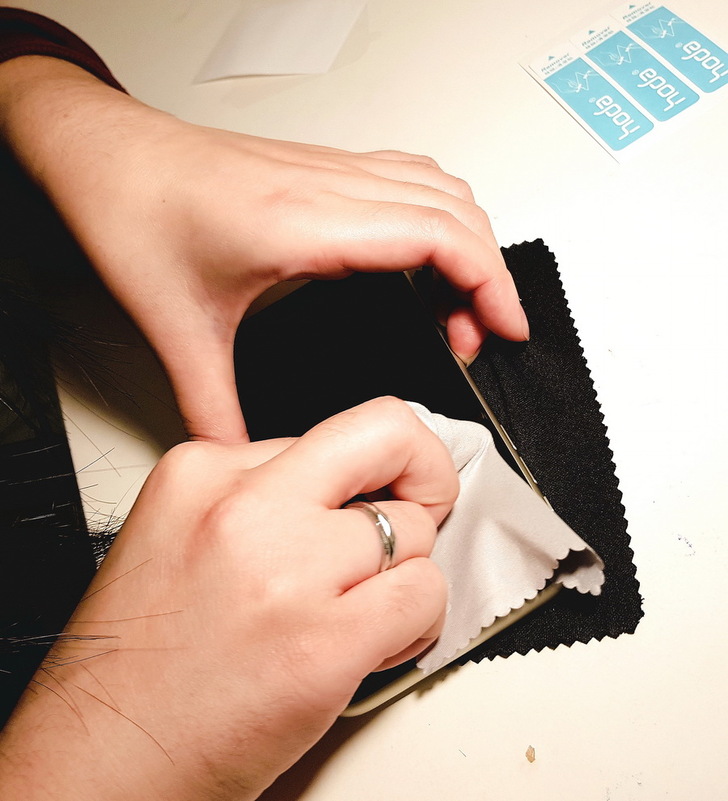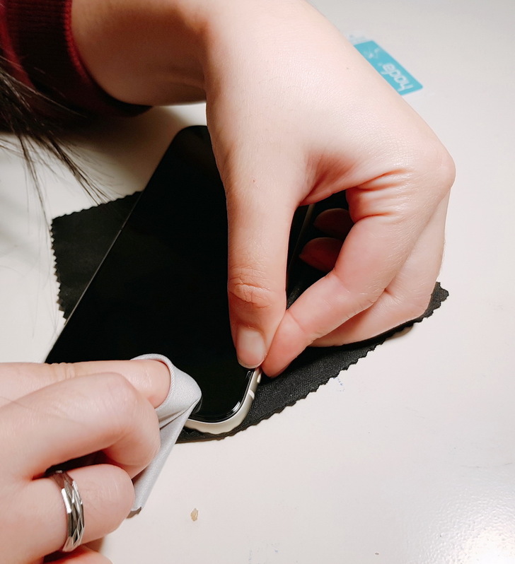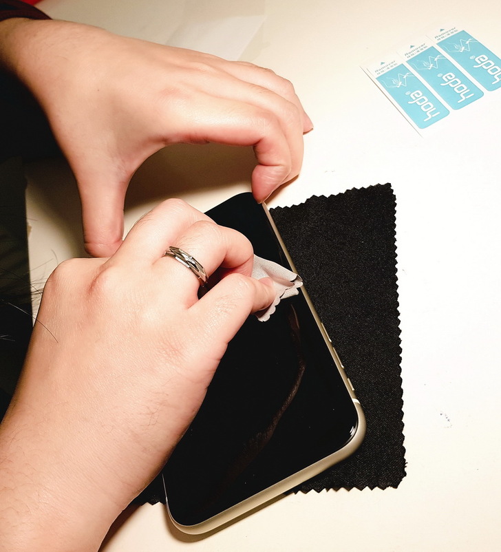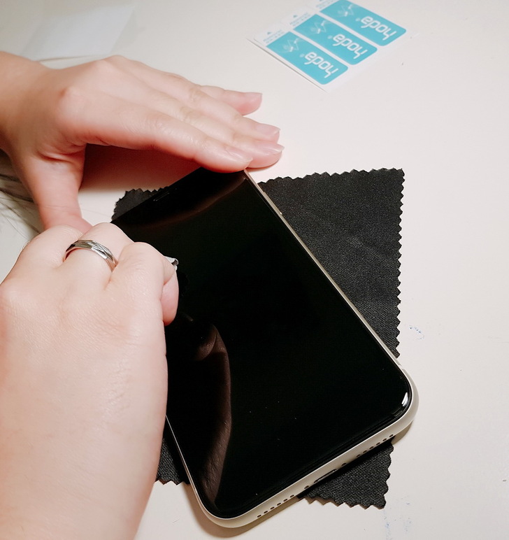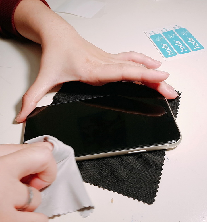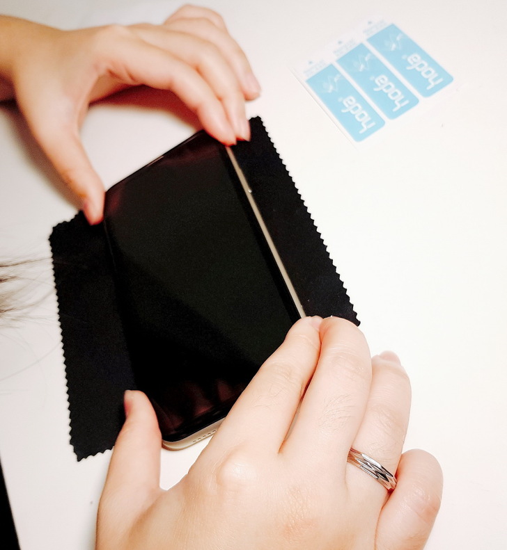▼ 照著步驟一做就是用 清潔濕巾 把螢幕擦乾淨,其實因為是剛買的新機,也不會有什麼油污及指紋。