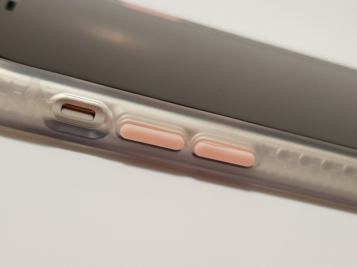 ▼ 美眉選的是 霧透白 柔石軍規防摔殼,因為 按鍵顏色 是她愛的 粉紅色。