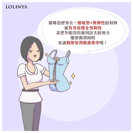 蘿琳亞塑身衣獨家一體成型連身式設計,搭配無彈性塑身專用的無感纖型布料,除了對緊實拉提身材曲線效果好外,更能有效將多餘肉肉推往胸部集中托高並安定包覆,透過塑身衣輔助讓女性除了瘦身以外,更能讓自己不管幾歲都維持胸型飽滿美挺,簡單保養、穿出舒適與自信!