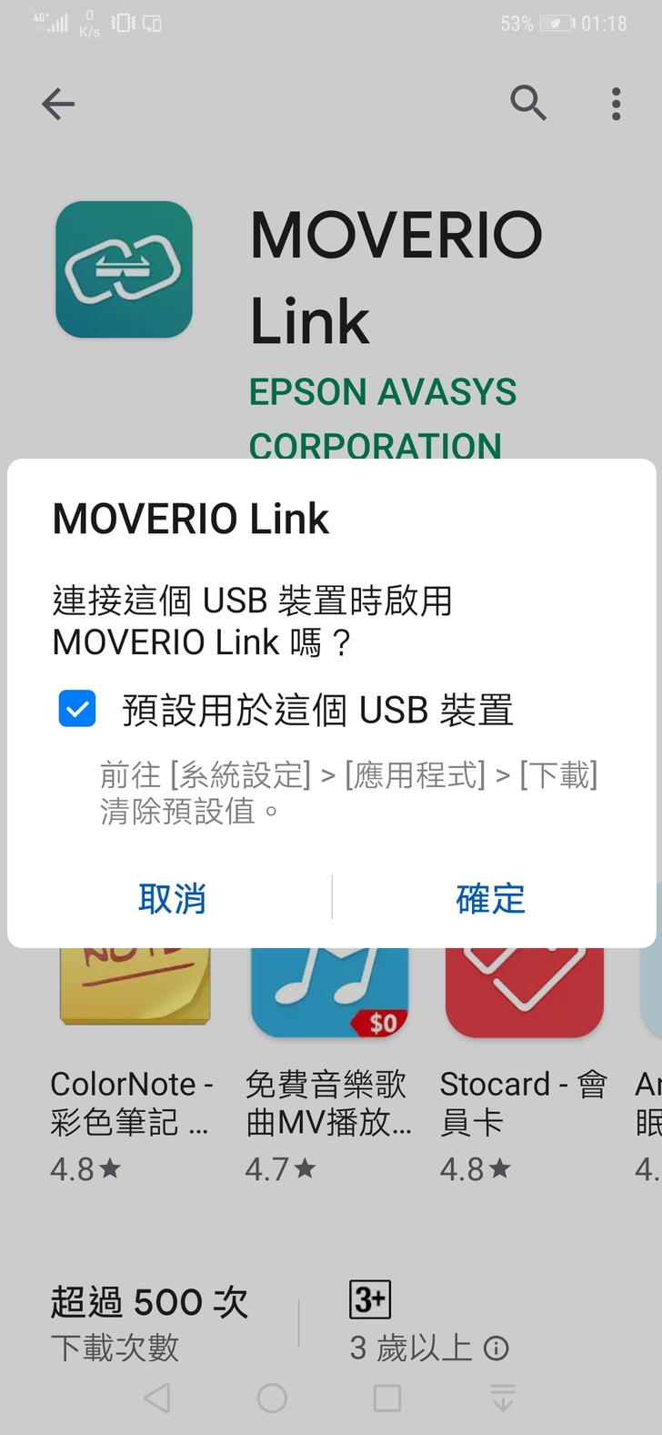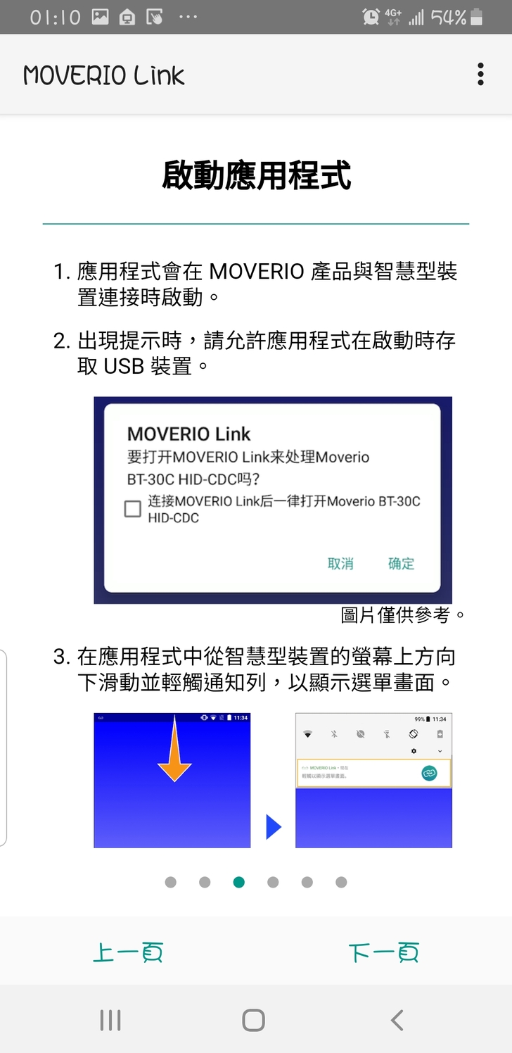 當眼鏡連接手機後,第一次要先允許應用程式存取USB裝置,之後再進入時就不用每次都按允許
