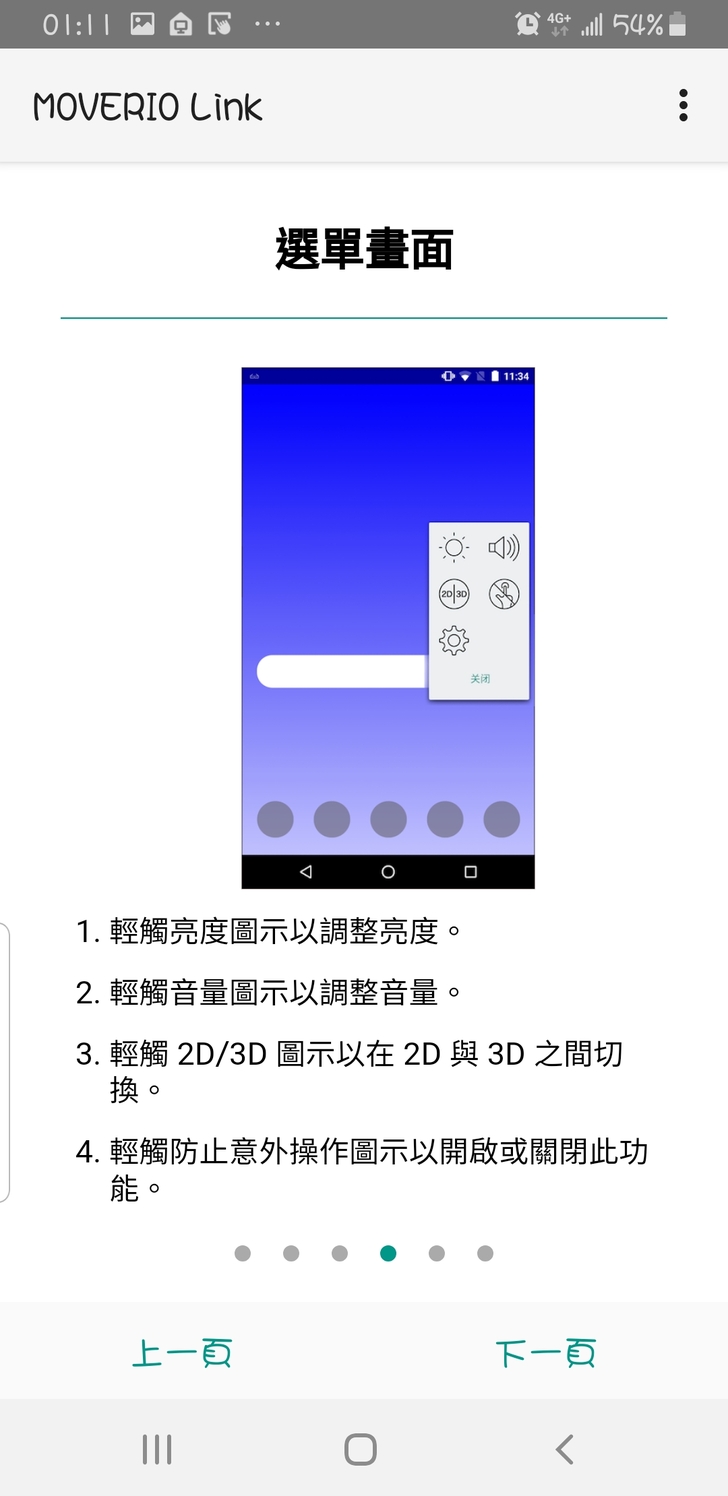 選單畫面可以調整亮度、音量、切換2D/3D及防止誤觸開關