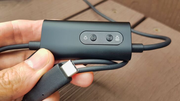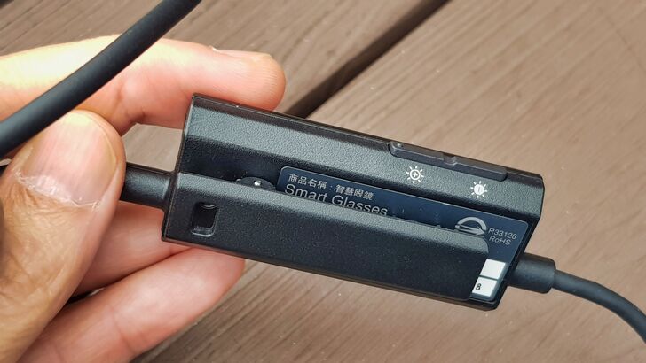 連接眼鏡的控制器,上方按鈕是控制音量,眼鏡本身無法輸出聲音,需要通過接上3.5mm的耳機才能控制聲音