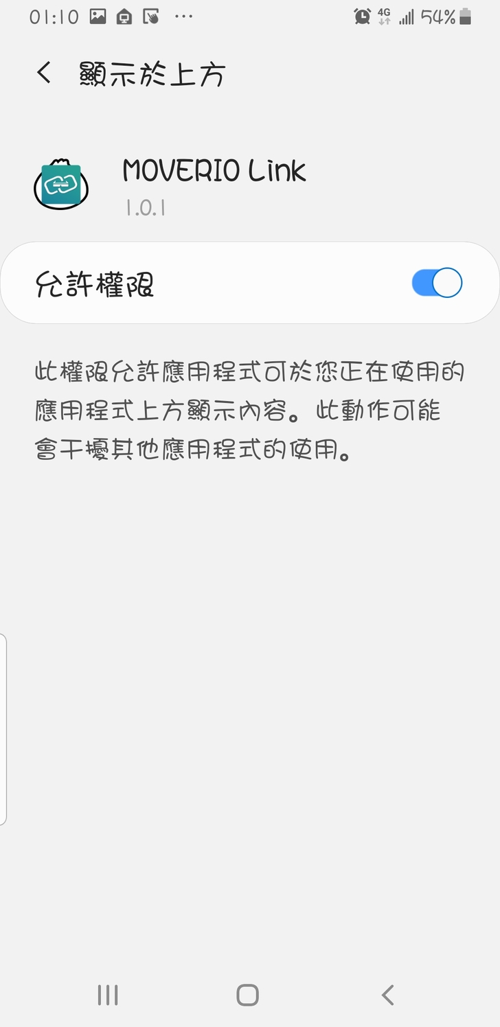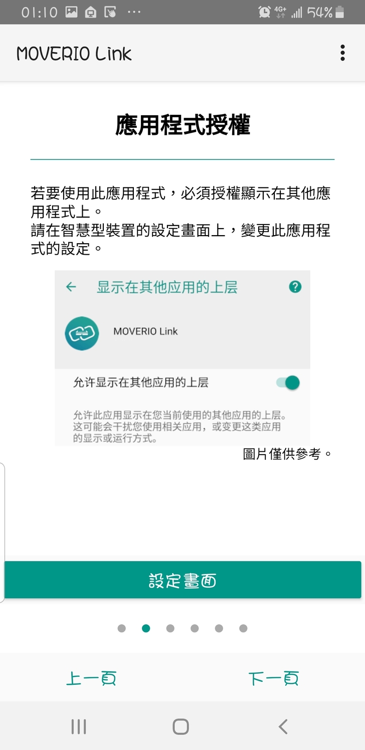 安裝完畢進入畫面後,會教導如何使用,首先要開啟「顯示在上層」功能,這裡可以直接案設定畫面進入設定