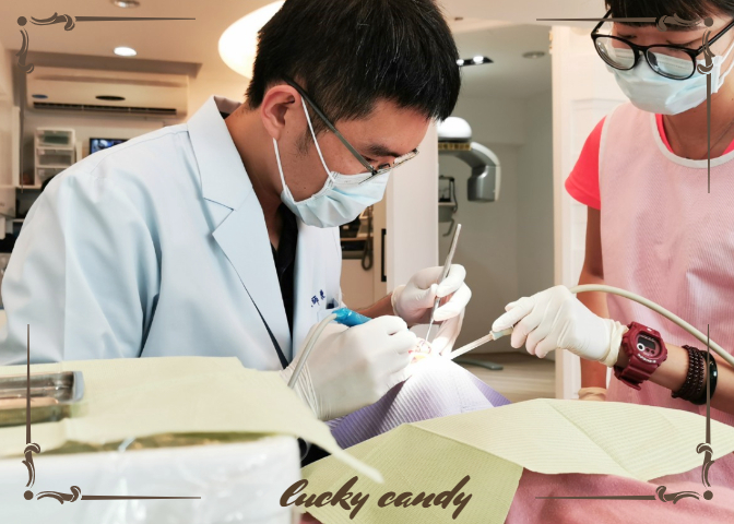 什麼!!!不是才躺下來幾十分鐘而已嗎??是麻醉藥讓眼皮太鬆腦袋混沌?還是陳醫師微創植牙手術太強大,這個植牙手術竟然比我當初想得還要快速,跟診護士替我翻起藍色手術布攙扶著坐起來,然後拿兩個冰敷袋讓我做患部冰敷,冰敷同時陳醫師針對微創植牙術後一些注意事項做說明,步出獨立治療室才真正意識到手術真得完成了耶。