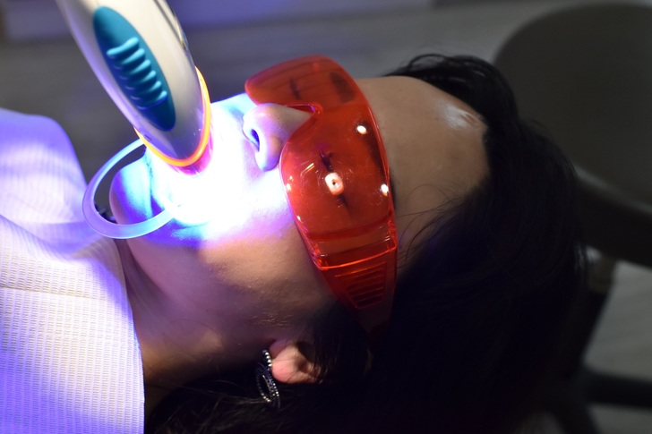將美白藥劑塗抹在牙齒表面,再以特殊波長940 nm的光照射20分鐘,