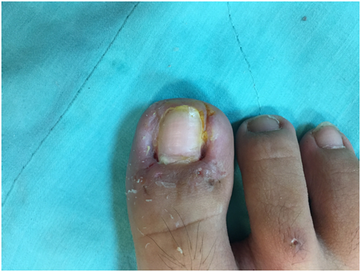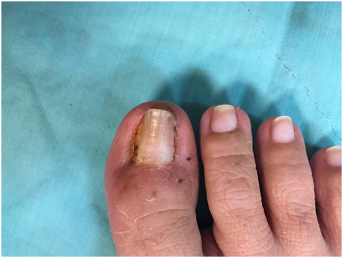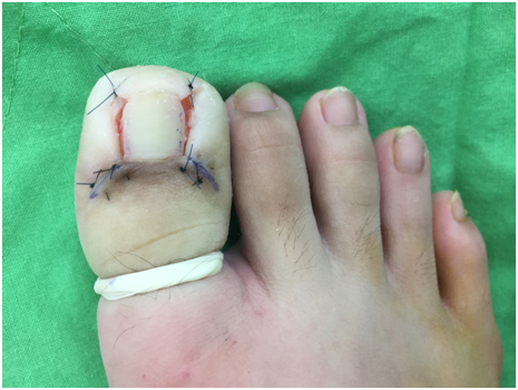 (個案三)甲溝炎手術後拆線,此個案術後急著出國,