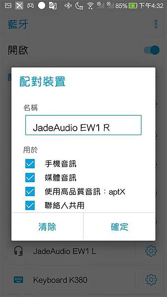 如果有看到JadeAudio EW1 R或JadeAudio EW1 L,點選連線後就可以使用