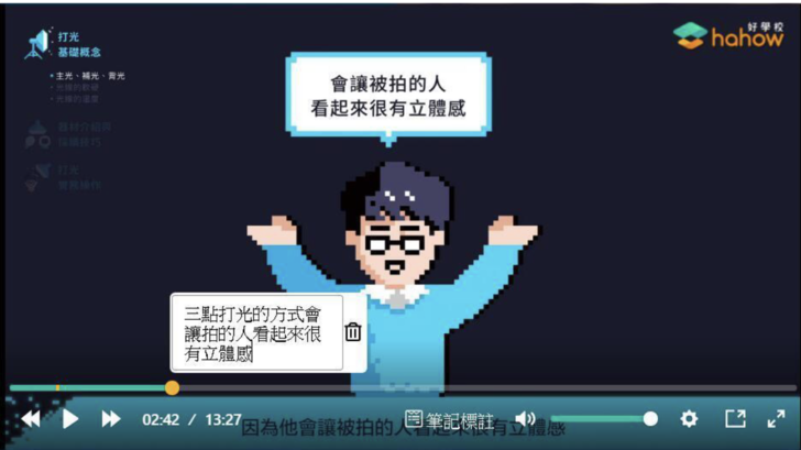 看影片的時候個人覺得最方便的地方,就是影片可以做筆記標註,原本一開始想說可以邊看影片邊作筆記,這樣就只要看重點就可以了,但後來我發現它的筆記功能比自己實際做筆記更方便。
