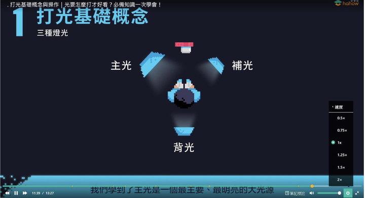 影片的部分可以調整速度,如果自己覺得看字速度比較快可以調得快一點節省時間,或者自己覺得影片內容說得太快也可以調慢,當發現有那裡聽不懂也能往後調一點,並不會影片過了之後就沒辦法當下再看一次,甚至也可以不斷的重播自己喜歡的地方 XDD