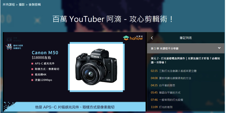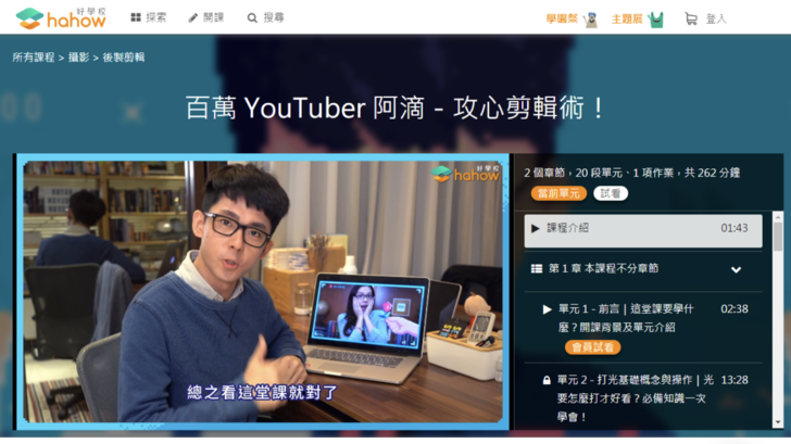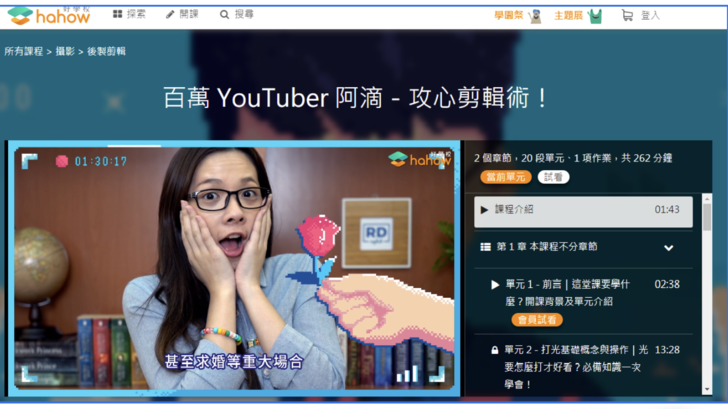 直到前陣子找到線上學習課程,發現阿滴有在上面教如何拍攝影片(竟然不是教英文!?)