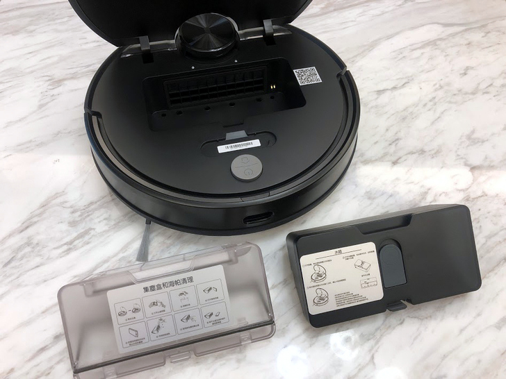 除了主機之外,還有兩隻邊刷、集塵盒、水箱、HEPA濾網兩個、抹布兩條、充電器、充電座以及一份使用說明書