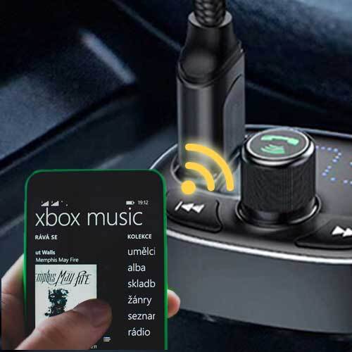 現在許多新車都已經有配備藍芽裝置,可以使用無線連接。只要藍芽配對成功一次,之後都可以直接播放。根據Ting2017作者敘述車載藍牙裝置以無線藍牙技術為設計研發的車內無線免提系統。車載藍牙通過FM頻率和整個汽車的音響配套,在使用的時候,有藍牙功能的手機和汽車的音響搭配在一起,方便車主在來電的時候,可以自動切換音響的聲音、靜音,並降低車載藍牙的功耗,掛掉電話的時候聲音就自動恢復。