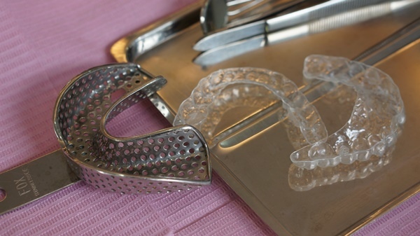 而咬模前護士則拿著上下顎金屬牙托先測量口腔大小
