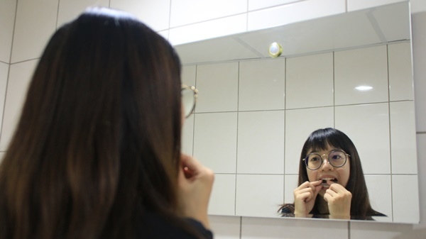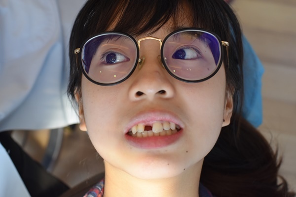 然後在嘴巴裡面放入一面鏡子拍攝牙齒排列樣子