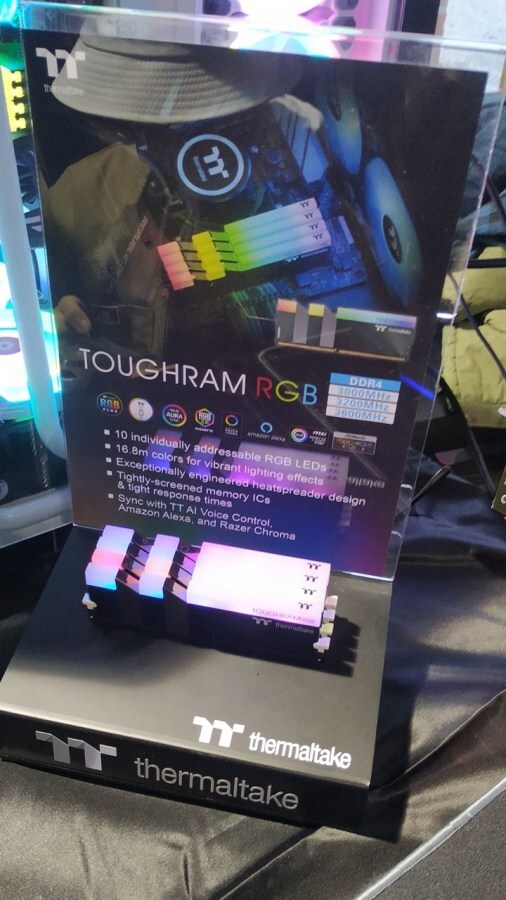 桌上TT週邊,以及左邊展示的TOUGHRAM RGB BLACK記憶體。