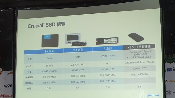 左邊有新產品Crucial X8 SSD 行動硬碟,比HDD行動硬碟快7.5倍速度。