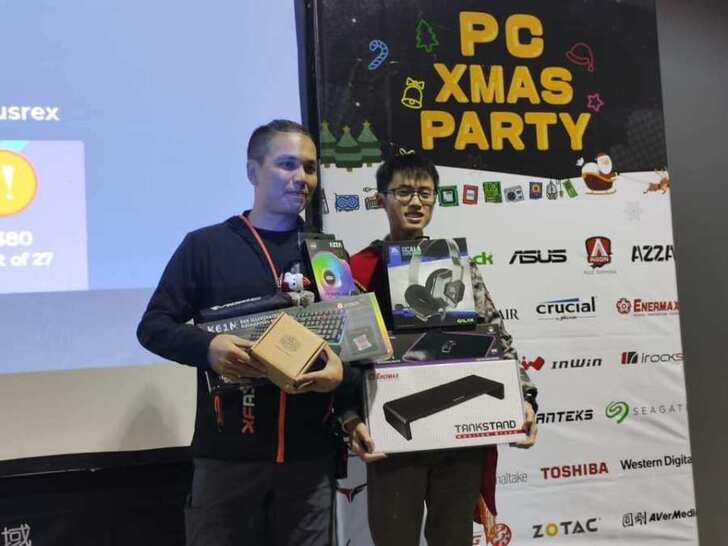 坐在後方及左邊的朋友很幸運的被點到,分別拿到1TB SSD 及 4TB HDD外接硬碟 (〒︿〒)。