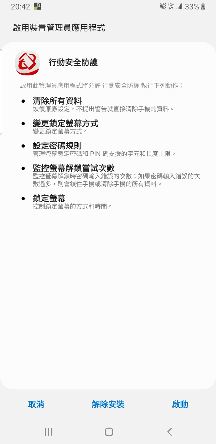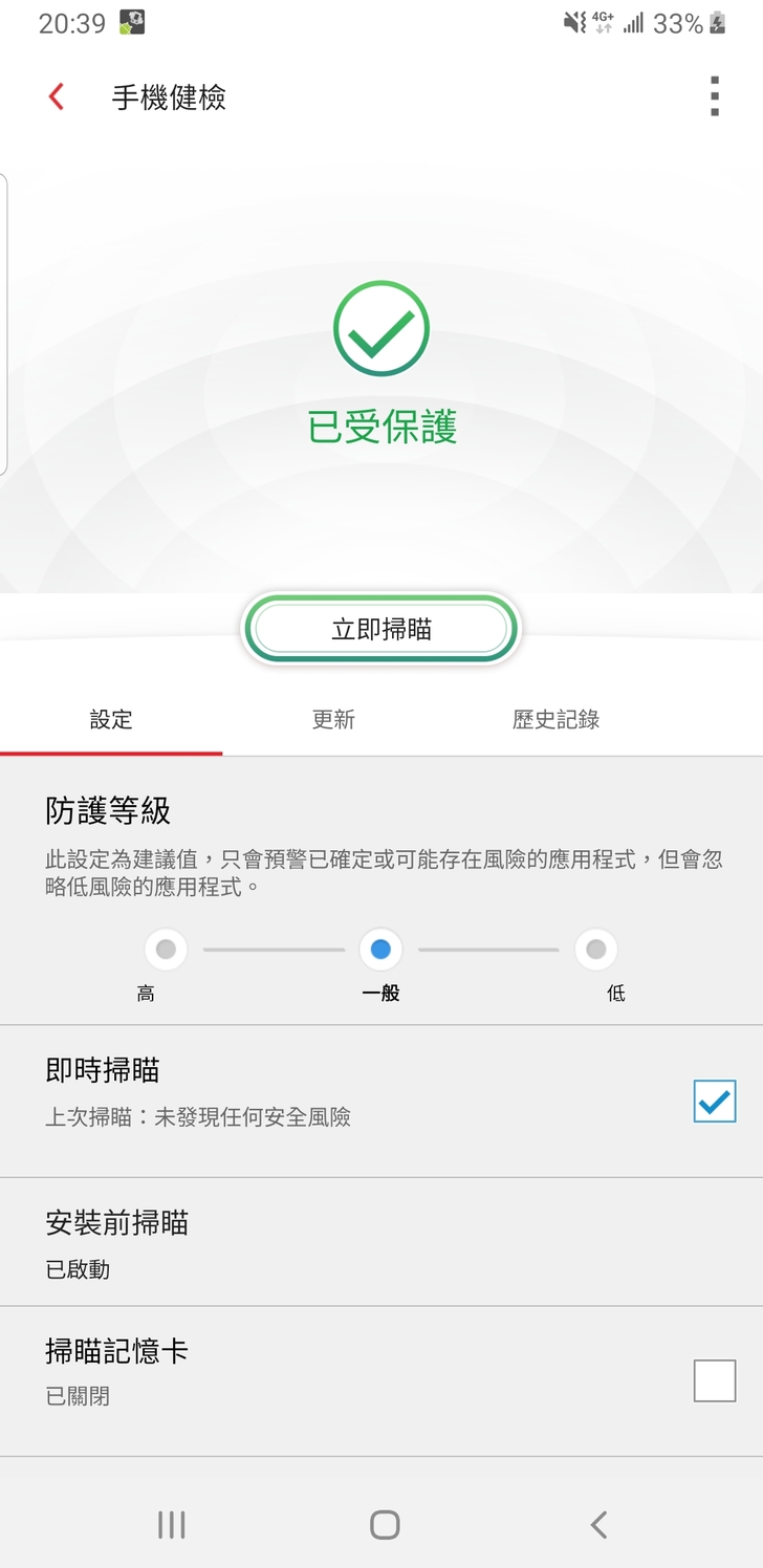 這功能就是針對手機內所有的程式進行掃瞄,以防止我們不慎安裝到病毒或是木馬程式,手機內的資料都被竊取