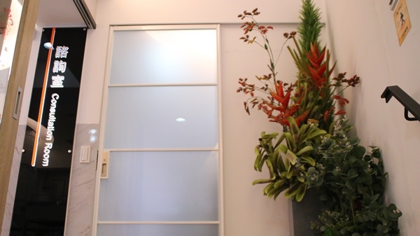 樓梯走上來正前方是諮詢室, 諮詢人員會在諮詢室內跟客人介紹與說明, 隱密的空間保有客人的隱私