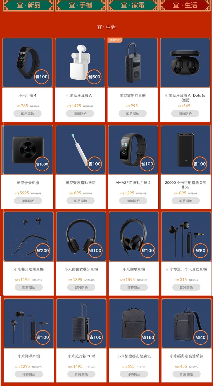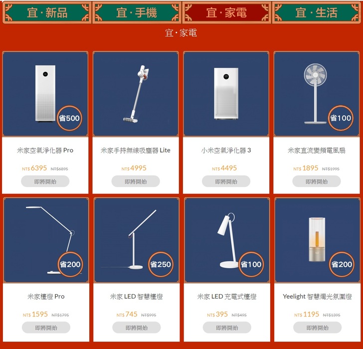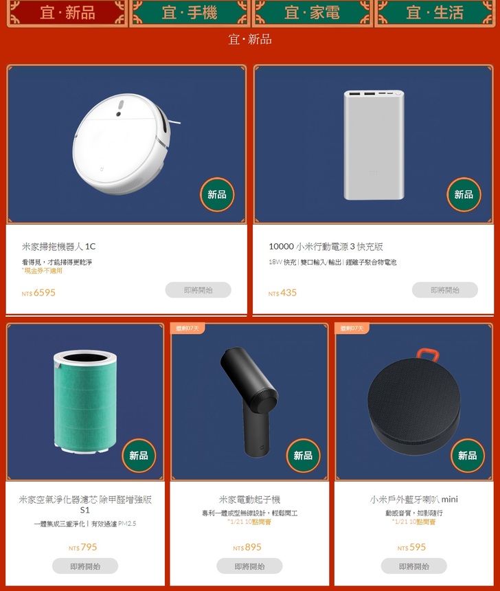 米家掃拖機器人 1C),以及最高新台幣500元滿額現折現金券(不適用於手機)。小米年貨節擁有超