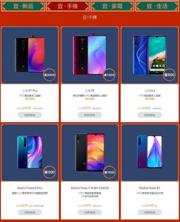 幣$2,000元,特價新台幣$12,999元,再贈原廠專屬保護貼;小米9T直降新台幣$1,000元,特價新