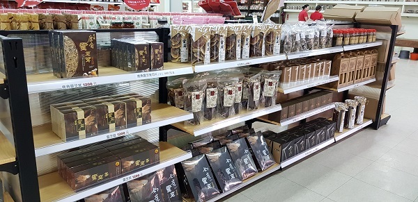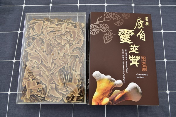 要回家之前我們有去伴手禮區逛了一下,看到這邊有好多各種菇類的產品,逛了一圈我買了一盒我覺得非常有興趣的鹿角靈芝茸。