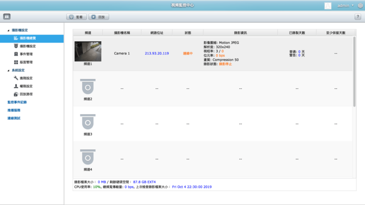 還記得 TVS-872N 本身有 HDMI 2.0 輸出吧,將 NAS 連接顯示器,監視器畫面就可以直接投放了。而因為 NAS 是連網裝置,就算不在辦公室或店裡,也可以隨時透過瀏覽器查看監視器畫面以及回放。而當然使用 NAS 的好處就是多了錄影資源配置、錄影備援機制以及更大的擴充彈性等優點,是一般市售監視器系統做不到的。