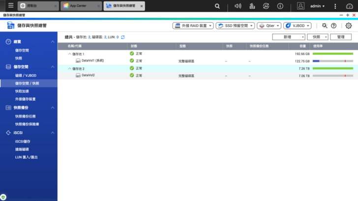 另外搭配 Seagate IronWolf 4TB 兩顆做 RAID 0 達成大空間、高效能的配置,總共建立兩個儲存槽來測試。