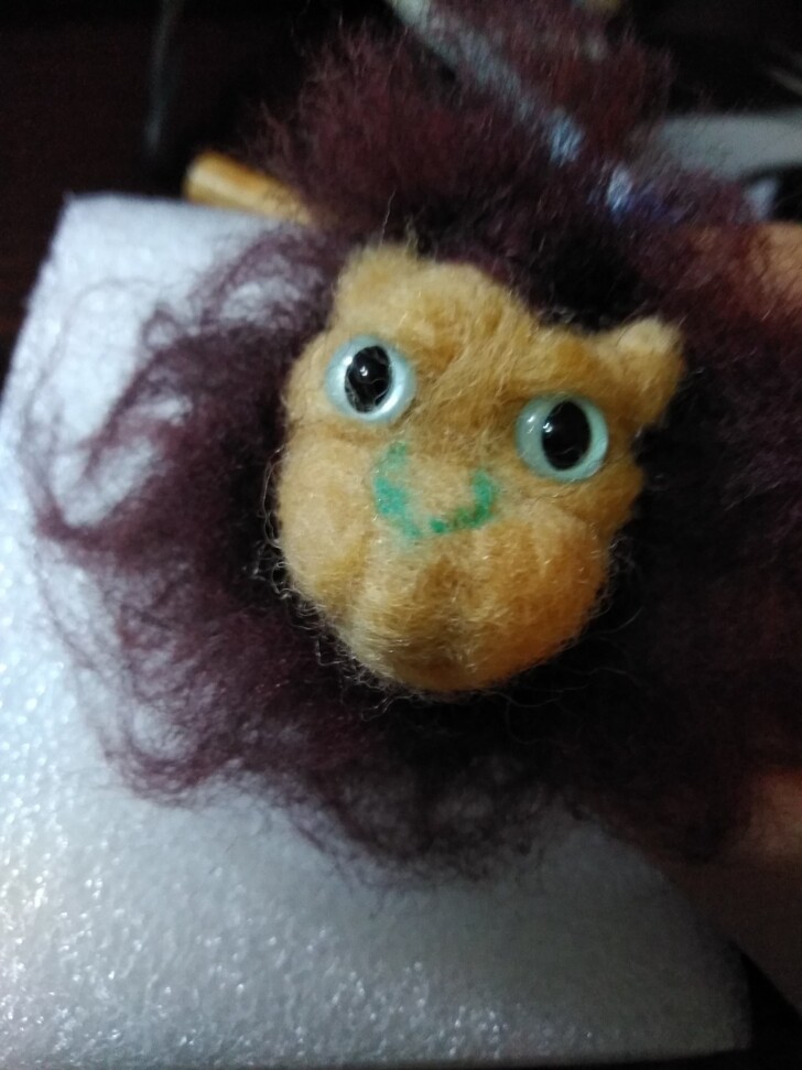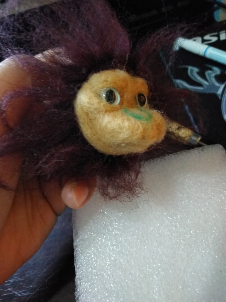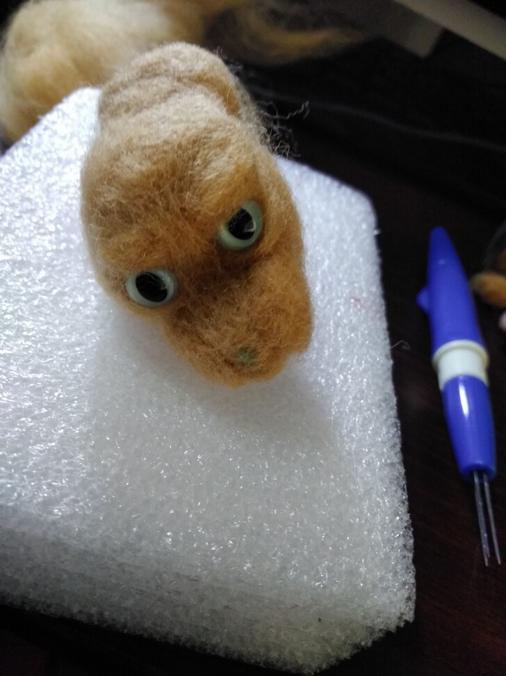 再來是植毛,把鬃毛上上去(這裡要跟大家說對不起,因為買錯羊毛,所以鬃毛的顏色不太像,大家就將就一下XD)